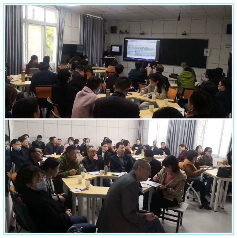 会上,李建从一流课课程的标准、一流课程申报的要点两个方面详细解读了一流课程的建设与申报。首先,他着重讲解了线上和线上线下混合式一流课程评审标准,如在教与学发生改变方面,线下一流课程以提升教学效果为目的,因材施教,运用恰当的数字化教学工具,有效开展线下课堂教学活动,混合式一流课程要符合“安排20-50%的教学时间实施学生线上自主学习”基本要求,创新教学方式方法,有效开展线上与线下密切衔接的全过程教学活动。其次,关于一流课程的申报要点,他首先从评选数量占比、已评数量和剩余数量介绍了五类国家级一流课程的申报情况,接着从课程基本信息、授课教师(教学团队)、课程目标、课程建设及应用情况、课程特色与创新、课程建设计划、附件材料七个方面解读了一流课程申报书填写中需注意的要点,并分析了我校老师一流课程申报书中的亮点及需要修改注意的地方。最后,他强调一流课程申报是成果的申报,要集集体智慧、下真功夫、高度凝练!